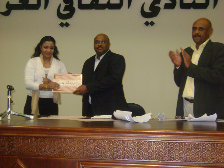 فى ختام الحفل كان لزاما على المنظمين أن يشكروا السيد/ د. عمر عبد العزيز مدير النادى العربى