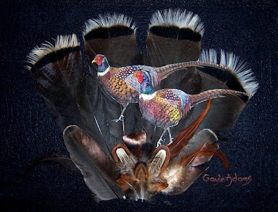 وفى مرة عجبنى ريش غمرية وقع من شجرة واتلفتة يمين وشمال مافى زول بعاين لى اتوكلتة وشلتة الفطيسة فى شنطتى وعملتة بيها لوحة جميلة شاركتة بيهافى معرض بعنوان ريش فى معرضى فى الهلتون و إشترتها الاستاذة التشكيلية زوجة الاديب المرحوم عبداللةالطيب قرازلدا الطيب وكانت موجودة فى مجمع الغةالعربية