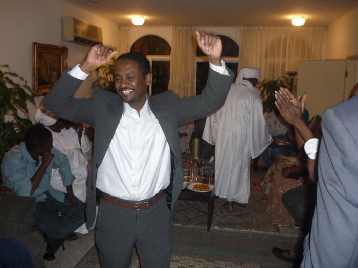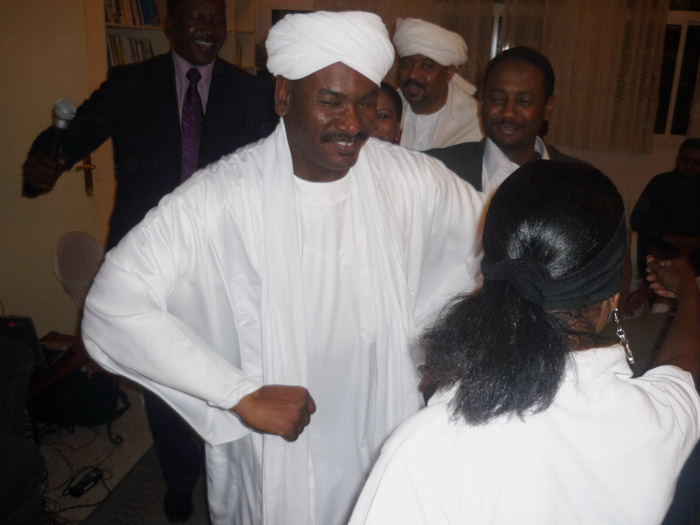 نادوس وأبنوسه ... كُلما عُدت مِن صالون أُقيم في كُل بَيتِهِما سألت نفسي لِماذا يفعلون ذلِك ؟ لم أجِد إجابة غَير أنهُما لا يستطيعان إلا أن يفعلا ذلِك ... تقطُر الطيبة السودانِية مِنهُما وكرم ينساب < عادي > ... ماف < غادي > كلو < نادي >