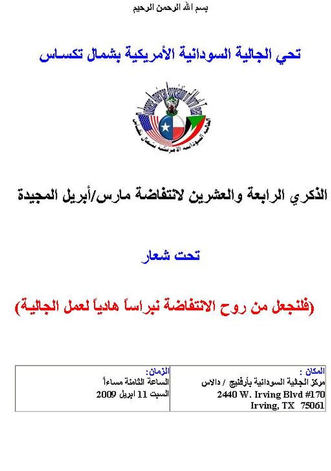 Re: الجالية السودانية بشمال تكساس تحتفل الذكري الرابعة والعشرين لانتفاضة مارس/أبريل المجيدة (Re: الجالية السودانية الامريكيةTX)