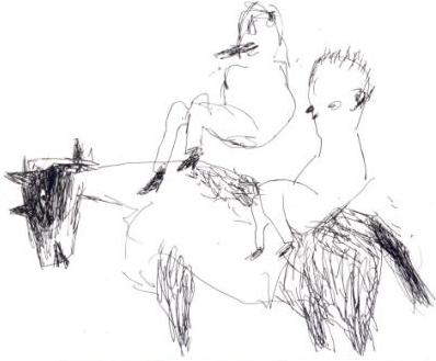 (لم يلف هذا الدوريش في السوق؟ خمس ساعات وهو يلف، وينظر لأكوام الطماطم، يلف ويلف، يسفر فمه عن ابتسامه غريبة، يرى الجمال في القبح، والصندل يتضوع من روائح العرق، كأم تغسل تغوط طفلها المحبوب، بأنف الام الرؤوم، وقلبها، يشم الروائح، كل الروائح!!