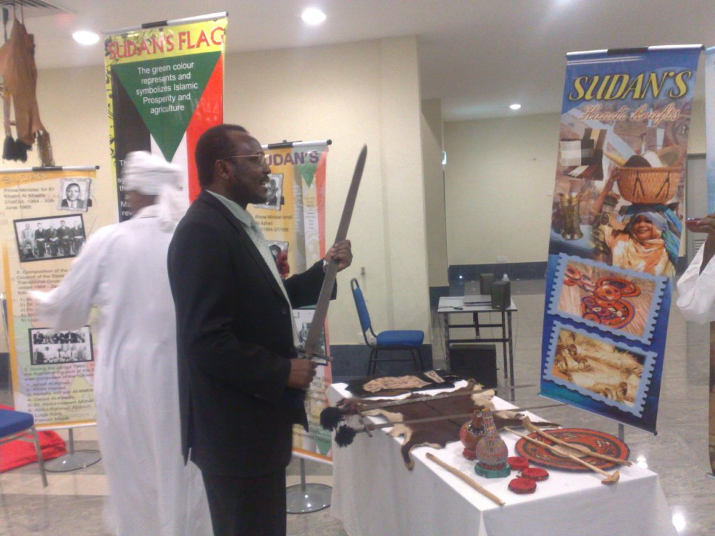 الشكر الجزيل لسفارة جمهورية السودان التي امدت معرض الطلاب السودانيين بكل ما لديها من تحف واعمال يدويه وملصقات للتراث السوداني الاصيل لانجاح البرنامج