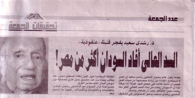 Quote: رشدي سعيد يفجر قنبلة .. السد العالي أفاد السودان أكثر من مصر‏!‏