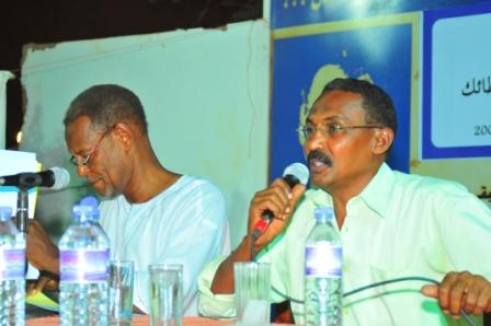 اليوم الختامي ندوة فكرية يتحدث فيها الأساتذة: باقان أموم – الباقر العفيف – تيسير مصطفي – صديق الهادي أحمد رجب – صديق أمبدة – محمد سليمان
