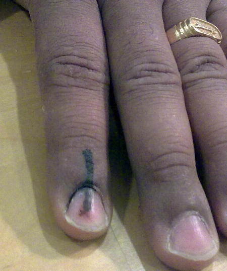 هكذا استلف عنوان الكاتب الأستاذ/ فتحي الضو، وأنا ارى صديقي الهندي المهندس/ جيسمون توماس الهندي وهو يمارس الديمقراطية في وطنه أثناء إجازته السنوية، مارسها فعلاً وقولاً، وهو فخور بمنبر الديمقراطية الواعي في بلده الذي خوله - وهو مقيم ويعمل خارج الهند - أن يعبر عن رأيه، وأن يختار من يحكم بلاده، ونظل نحن السودانيون ننتقل من حكم إنقلابيين إلى آخر، وتتوق دواخلنا لمثل هذا اليوم، يوم نرسم فيه على الورق ملامح مستقبل بلادنا، وتُرسم على أصابعنا علامة التصويت هكذا