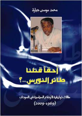 تشهد الايام المقبلة صدور كتاب جديد للأستاذ محمد موسى جبارة بعنوان (أحقاً قتلنا طائر النورس) في 470 صفحة، والكتاب يضم بين دفتيه الكثيرمن الوقائع التاريخية التي تجعلنا نستبصر الطريق وفيه الكثير من العلامات الدالة على أهمية التوثيق وتدوين الوقائع والأحداث المهمة في تاريخ حياتنا سيما ونحن في السودان لا زلنا نتنكب الطريق ولا ندري أي مخرج يخرجنا من أزماتنا المتكررة والتي تشابه بعضها البعض دون أن نستفيذ من التجارب.