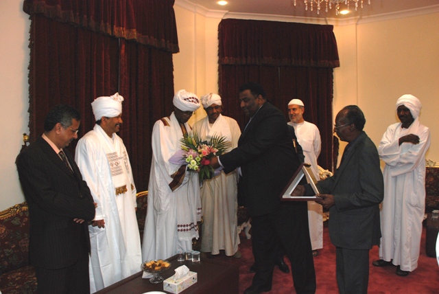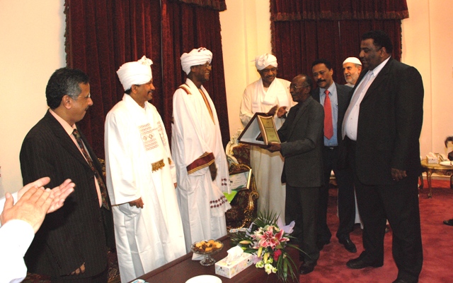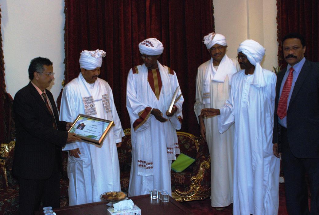 علم الدين حمدالنيل نائب رئيس المجلس الاجتماعي للجالية السودانية بالشارقة يقدم درع الجالية للاستاذ عالم عباس