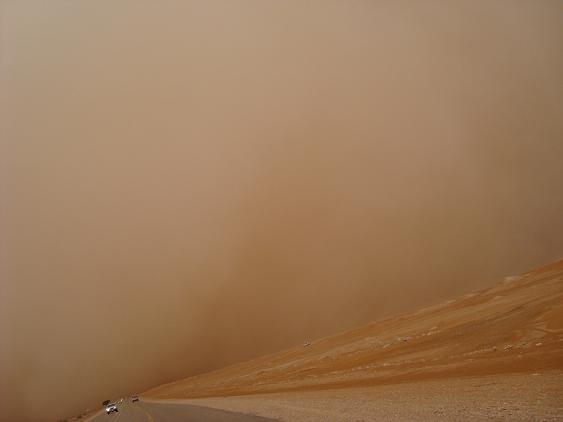 قبل اسبوعين قررت ان اتمشى برفقة عائلتي واخترنا الذهاب الى سد الحريق الذي يبعد من الرياض حوالى 230 كيلومتر . خرجنا من الرياض عصرا وكان جوها ربيعيا ممطرا . ولكن بدأ بالتغيير رويدا رويدا كل ما ابتعدنا عن العاصمة الرياض . وصلنا الى حوطة بني تميم التي توجد في نهايتها ( بحيرة ) ممتلاة بالماء من جراء الامطار الاخيرة التي هطلت على المنطقة . اخذنا بعض الوقت للاستمتاع بروعة البحيرة وجمالها وهي تقع بين الجبال من الشرق ومزارع النخيل من جهة الغرب تحركنا بعدها لمواصلة الرحلة التي لم يتبق منها سوى 50 كيلومتر. في منتصف المسافة وبمقدمات سريعة وخاطفة هبت علينا عاصفة هوجاء ..