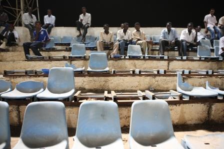 اها دي الصورة الفي جريدة المريخ من منتديات كورة ليهم التحية .. عليك الله عاين للزردية وعاين لي لون الكراسي !!!!!!! الصورة واااااااضح جدا انها ماخودة زمان ايام تركيب الكراسي .. ياخ اسة عليك الله اتخيل معاي مشجع يطلع من بيتهم وشايل زرديتو وماشي زول تقليع وبعد الكورة يخت الزردية وكمان لونها ازرق .. معقووووولة بس ؟؟؟ شوفت الفبركة والكضب؟؟؟ والله اعلام المريخ بقا زي مناضلين سودانيز  يجيبو ليك صورة مجاعة في  الكنغو ويقولوا ليك ديل ناس دارفور..