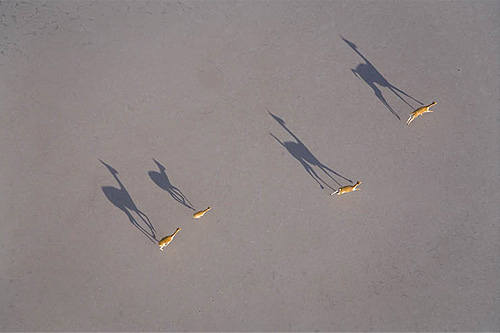 الصورة المعروضة صورت عصرا وتكمن حيلتها في تكثيف ظل الجمال بحيث يصبح الظل هو الموضوع بدلا عن الشئ الذي يلقي بظله على أرض الصحراء التي تفعل هنا فعل الكانفاس في (التلوين) لتضيف الى دراما المشهد وتميزه. |