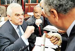 وشهد مجلس الشعب، أمس، مواجهة ساخنة بين الدكتور أحمد فتحى سرور، رئيس البرلمان، والدكتور مفيد شهاب وأمين أباظة، وزير الزراعة، إذ وجه إليهما5 أسئلة عن طبيعة الشحنة والإجراءات التى تتبعها الحكومة مع الأغذية المستوردة غير المطابقة للمواصفات وهوية مستورد شحنة القمح الأخيرة، ولم يستطع الوزيران تقديم ردود مقنعة للنواب، فيما أعلن برلمانيو الصعيد غضبهم من تخزين الشحنة فى محافظات الصعيد، وطالبوا بإعدامها فوراً.