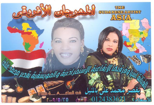 الأخ/ عبد الغفار تحياتى حضرت ذلك الحفل بيوم افريقيا (بالصدفه) عن طريق الدعوه التى وصلتنى منك وعلمت منها أن الفنانه/ آسيا مدنى تشارك فى حفل ما كنت اعلم تفاصيله. وللأسف اختلف عرض الفنانه/ آسيا مدنى، كثيرا عما قدمته فى (الغورية) والذى اشدت به ، لأنه عبر عن (فلكور) سودانى حقيقى، وكان المفروض ان تقدم (آسيا) نفس العرض الذى قدمته فى (الغورية) فى فعاليه افريقيه، حتى تعكس وجه السودان الأفريقى الأصيل .. للأسف فى الأحتفال بيوم أفريقيا رقم 46 كانت معالم ما قدمته (آسيا مدنى) يعكس الوجه العربى لا الأفريقى. حيث لا يعقل أن تبدأ بأغنية (سيرة) كانت ناقصة (السوط) ثم أعقبتها (بمبروك عليك الليله يا نعومه)! ولذلك ذهبت قبل أن تكمل فقرتها غير راض عما قدم.