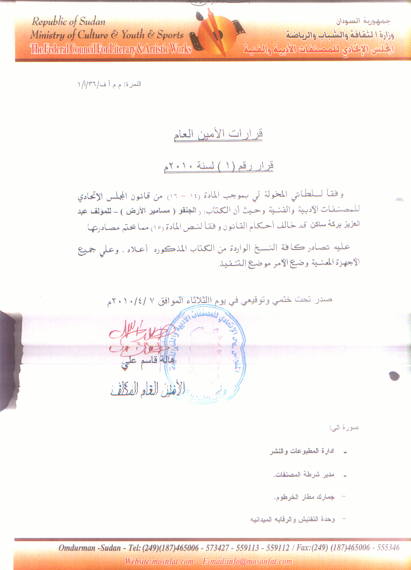 Re: الجنقو مسامير الارض ( الرواية المحظورة بأمر السلطان ) هنا (Re: ibrahim alnimma)