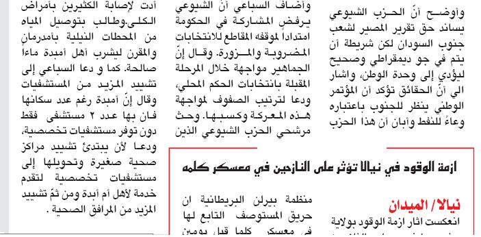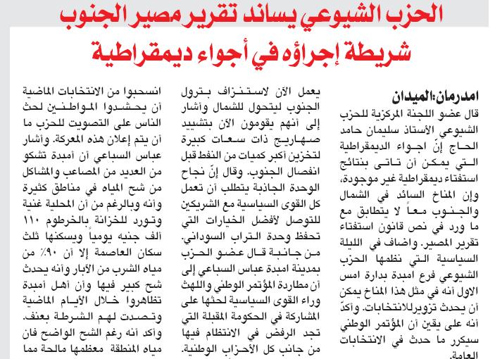 استغرب....اهمالكم لبرطعة الحركه الشعبيه نفسها ايام الانتخابات وتناقض مواقفها وسحبها لترشيح ياسر عرمان واصرارها على خوض بقية الانتخابات الولائيه و البرلمانيه رغم ان حجة سحب ياسر عرمان كانت (التزوير)!!