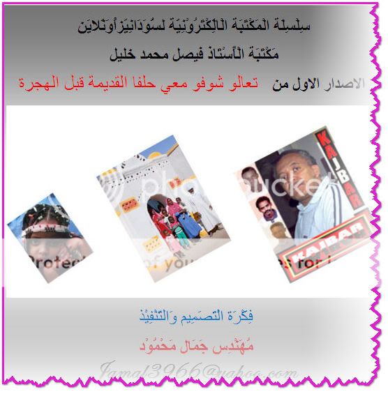 واقدم لكم الان مَكْتَبَة الْأُسْتَاذ فيصل محمد خليل الاصدار الاول وتحتوى على جميع صفحات( تعالو شوفو معي حلفا القديمة قبل الهجرة )وتقريباً حوالى 12 صفحة ، أَتَمَنَّى أَن يَنَال رِضَا الْجَمِيْع وَأَنْتَظِر مِنْكُم أرَاءَكُم وَمُقْترَحاتِكُم .