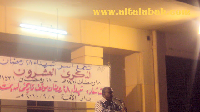 الصور يا حاتم Quote: وعي الطلبة : تغطية خاصة يحي تجمع أسر شهداء حركة (28) رمضان المجيدة الذكرى ال(20) للحركة، وذلك بدار الأمة بأمدرمان ، يتحدث فيها مجموعة من قادة القوى السياسية والمنظمات الحقوقية ومنظمات المجتمع المدني، وأسر الشهداء، ومجموعة من الشعراء والأدباء . الزمان : الثلاثاء 7/سبتمبر/2010م -28/رمضان 1431هـ المكان : دار الأمة – أمدرمان شارع الموردة الدعوة عامة لكل المهتمين بالشأن الوطني .