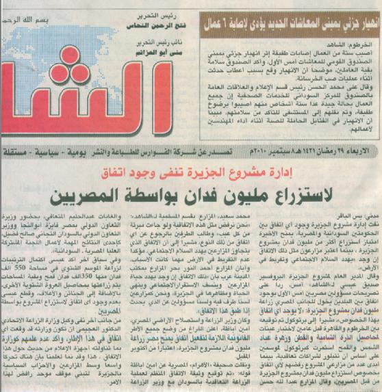 Re: مدير مشروع الجزيرة : لا إتفاق مع مصر بزراعة مليون فدان (Re: معتصم دفع الله)