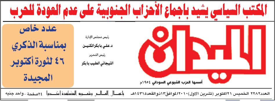الذكري الـ 46 لثورة أكتوبر المجيدة ( صحيفة الميدان ) عدد خاص غدا الخميس 21 اكتوبـ 2010م ــر