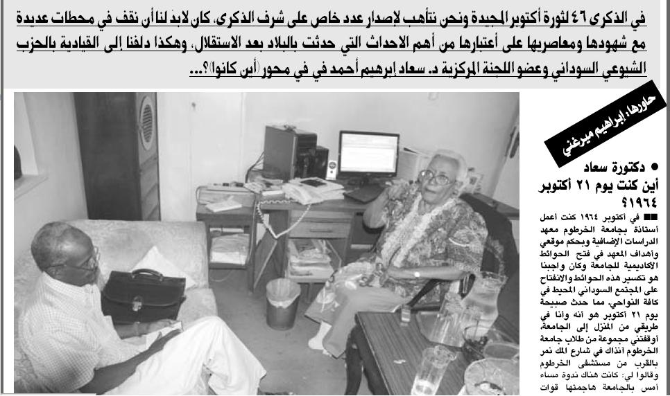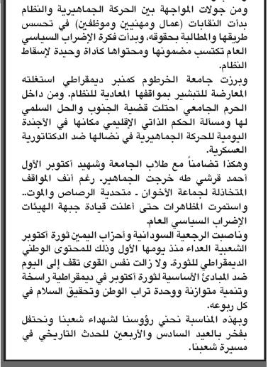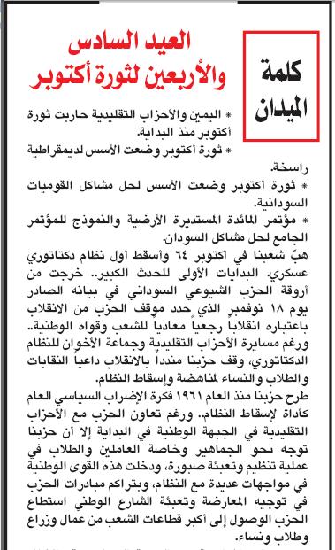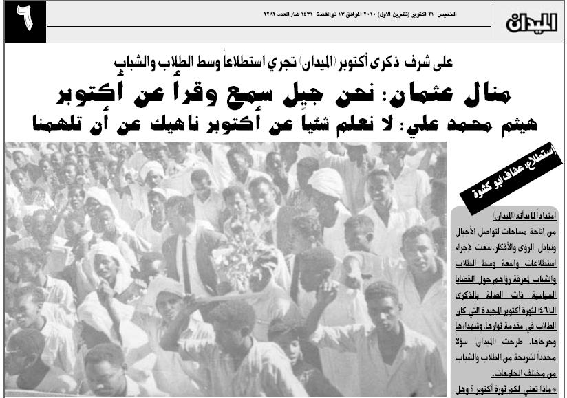 Re: الذكري الـ 46 لثورة أكتوبر المجيدة ( صحيفة الميدان ) عدد خاص غدا الخميس 21 اكتوبـ 2010م ـ (Re: محجوب حسن حماد)