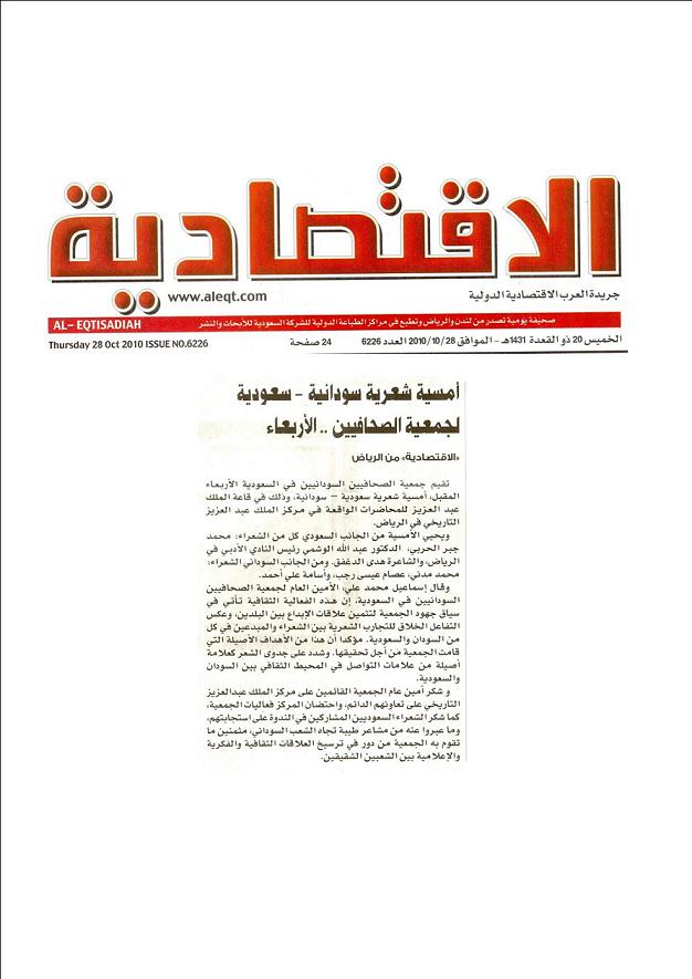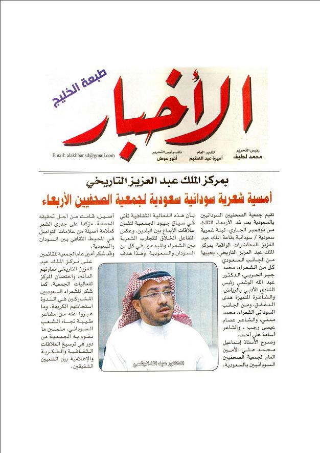 Re: تقيم جمعية الصحفيين السودانيين أمسية شعرية سودانية سعودية بقاعة الملك عبدالعزيزالاربعاء3 نو (Re: Mohamed Abdelgaleel)