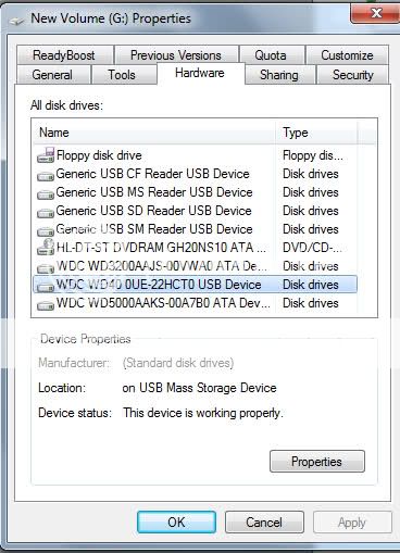 ثم اختر تبويب اجهزة hardware ثم اختر الهارد ديسك الخارجي