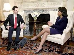 Quote: وكتبت الوزيرة الأميريكية الافريقية الاصل ان "القذافي عبر عن اعجاب غريب لي وسأل زواره لماذا لا تزورني الاميرة الافريقية؟ ".