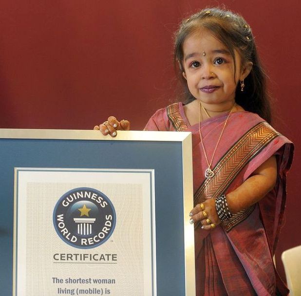 طالت الهندية جيوتى امجى النجوم بيديها على الرغم من قصرها الشديد، وذلك بعدما حطمت رقم بريجيت القياسى ببلوغها سن الـ 18 عاما بطول بلغ 62.8 سم لتتفوق بذلك على الأمريكية بريجيت جوردان التى بلغ طولها 69.5 سم. وتعد أمجى أصغر مراهقة حجما فى العالم، حيث لا يتعدى طولها الـ 62.8 سم وهى بمثابة طفل عمره سنتين فقط ووزنها 24.7 كيلوجرامات فقط.
