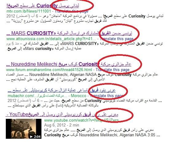 لفت إنتباهي أن الكثير من المواقع العربية أشارت إلي وجود علماء عرب ضمن فريق الكيوريوستي - كل ناس نكتوا ليهم واحد بلدياتهم
