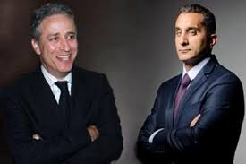 بعد ما اخلص من العيال و البيت و المطبخ و مشاغل الدنيا باخد لى 40 دقيقة لروحى. بختم يومى بال: The Daily Show with Jon Stewart و ب : The Colbert Report و هى برامج اخبار لكن فى طابع كوميدى. و لقيت انها احسن طريقة اختم بيها اليوم. قبل فترة باسم يوسف كان ضيف علىThe Daily Show . وكان ضيف ذكى ولماح و فاهم. فكرتا انى احضر برنامجه لكن ما اتسهلت لى. لحدى ما سمعتا انه تم التحقيق معه قبل كم يوم. امس Jon Stewart عمل فقرته الاساسية عن التحقيق مع باسم يوسف. و كانت من اجمل اعمال استيورت