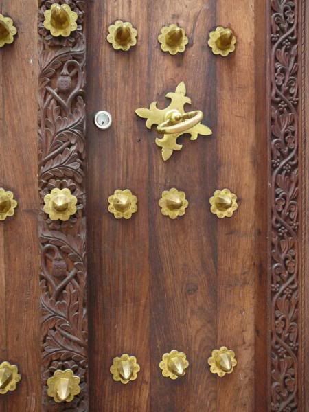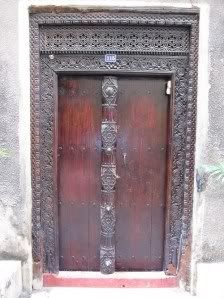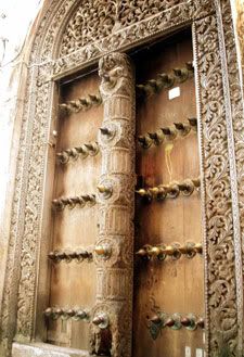 أبواب المنازل والمتاجر مصنوعة من أخشاب إستوائية ثقيلة وعليها نقوش دقيقة وبديعة، بعضها آيات قرآنية وبعضها أشكال هندسية هى نتاج عمل فنى مضنىٍ وطويل. أقدم باب خشبى فى زنجبار يعود تاريخه الى عام 1694. أبواب زنجبار الخشبية هى بصمتها الجمالية، تميزت بها عن كل بقاع الدنيا. هذه الأبواب تعكس تراث البلاد الفنى، فهى تزاوج بين الطابع الهندى والعُمانى والفارسى والسواحيلى. المربعة والمستطيلة تعكس الطابع العربى، وذات السقوف المقوسة تعكس الطابع الهندى، وهى عادة محلاة بأسنان نحاسية حادة وبارزة لصد الفيلة التى كان الهنود يستخدمونها فى الحروب.