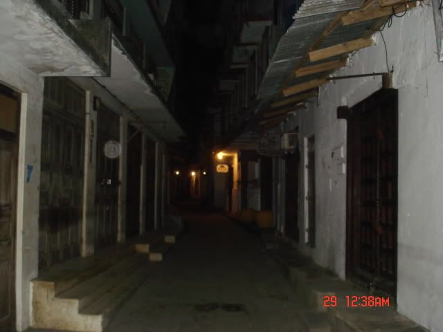 على جهة اليمين وعلى بعد كيلو مترين من حديقة فروزانى يبدو ميناء زنجبار التجارى باضوائه الباهرة، وعلى الرصيف ترسو سفينة حاويات ضخمة لكن لا يبدو أن هنالك ثمة حراك فوق السفينة أو فى الميناء فى هذه الساعة من الليل. على مد الأفق أضواء السفن الرابضة خارج الميناء تنعكس على أمواج المحيط.
