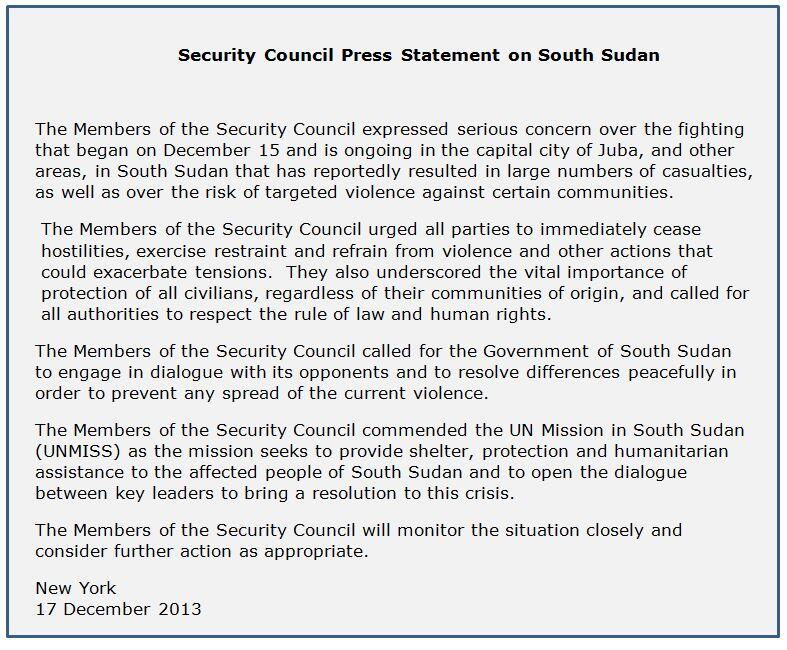 وتصاعدت التوترات السياسية في البلاد منذ أن أقال الرئيس سلفا كير نائبه ريك ماشار في يوليو الماضي. وقال ماشار، الذي أعرب عن استعداده لخوض الانتخابات الرئاسية عام 2015، عقب عزله، إنه من أجل أن تتوحد البلاد فلا يمكن أن تقبل "حكم الرجل الواحد ولا تستطيع التسامح مع الدكتاتورية".