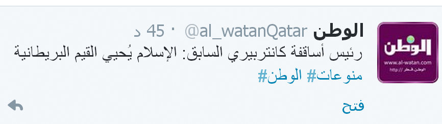 بالجد لن استغرب إن أعلن أسقف كانتربيري السابق في القريب العاجل إسلامه