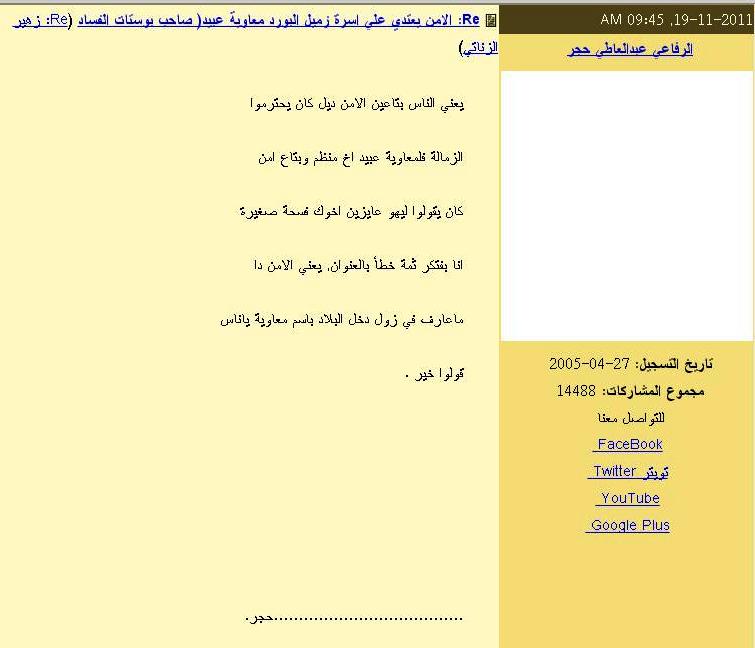 الامن يعتدي علي اسرة زميل البورد معاوية عبيد( صاحب بوستات الفساد)