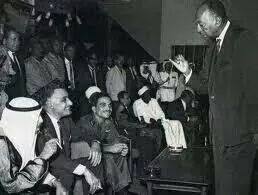 انظر الى طرف من تاريخ السوداني يوم سيادة الديمقراطية و اٍحترام الشعب. عندما يكون الزعيم عزيز عند اهله يحترمه و يقدره العالم الخارجي. انظر للزعماء كيف يتحلقون حول رئيس الوزراء السوداني محمد أحمد المحجوب، يستمعون كما المسحورين، وجوههم مبسوطة و مشرقة بالمودة. اما بشة فيهرب منه الزعماء هروب الصحيح من الاجرب.