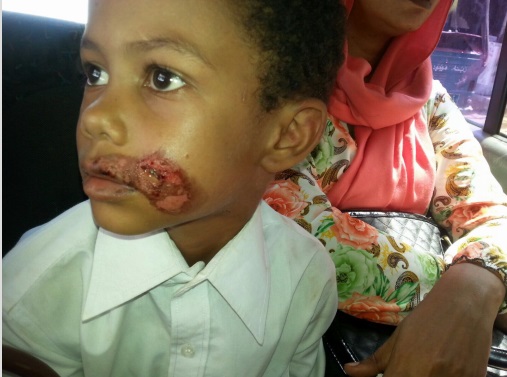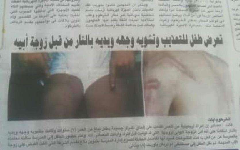 تعرض طفل للتعذيب و تشويه وجهه و يديه بالنار من قبل زوجة أبيه