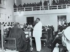 ﻓﻲ فبراير ١٩٥٥ ﺇﺫ ﺃﻋﻠـﻥ ﺨـﻼلﺯﻴﺎﺭﺘﻪ ﺠﺯﻴﺭﺓ ﻤﺴﺎﻭﻱ ﻓﻲ ﺸﻤﺎل ﺍﻟﺴﻭﺩﺍﻥ ﻓﻲ فبراير ١٩٥٥ ﻤﺎ ﻨﺼـﻪ :