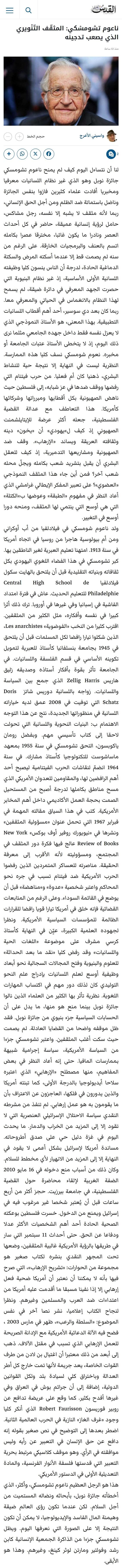نعوم تشومسكي.. المفكر "الليبرالي الاشتراكي" المناهض لسياسة أميركا (الجزيرة نت) 18/6/2024 مفكر وكاتب وأكاديمي وسياسي أميركي؛ يعد من أبرز مثقفي العالم، واشتهر بنقده الحاد لما يسميه "الليبرالية المتوحشة" وللسياسة الخارجية لحكومات بلاده، وخاصة تدخلاتها العسكرية منذ الثلث الأخير من القرن العشرين. *المولد والنشأة: ولد أفرام نعوم تشومسكي يوم 7 ديسمبر/كانون الأول عام 1928 في حي "أوك لين" الشرقي بمدينة فيلاديلفيا (ولاية بنسلفانيا الأميركية)، لعائلة يهودية يسارية الفكر، أبوه ينحدر من أوكرانيا وأمه من روسيا البيضاء. نشأ مع أخيه في بيئة يهودية وتعلم اللغة العبرية التي كان والده يدرّسها، وشهد نقاشات داخلية بين أفراد أسرته حول نظرية الصهيونية السياسية. تزوج مرتين وله ثلاثة أولاد.