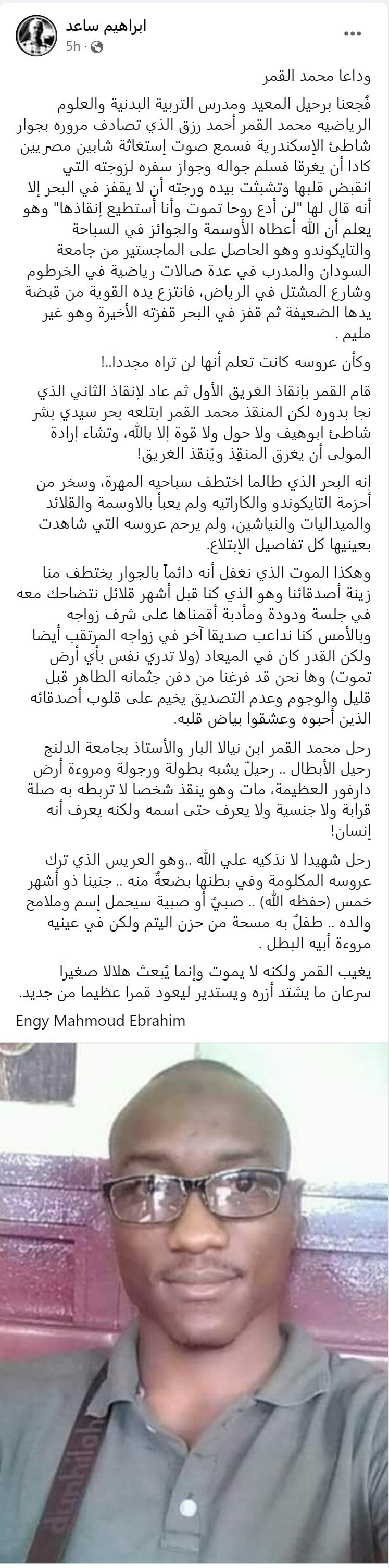 محمد القمر إسم على مسمى. نسأل الله أن يتقبله شهيدا ويحسن في فقده عزاء زوجته وأهله وأصدقاءه.