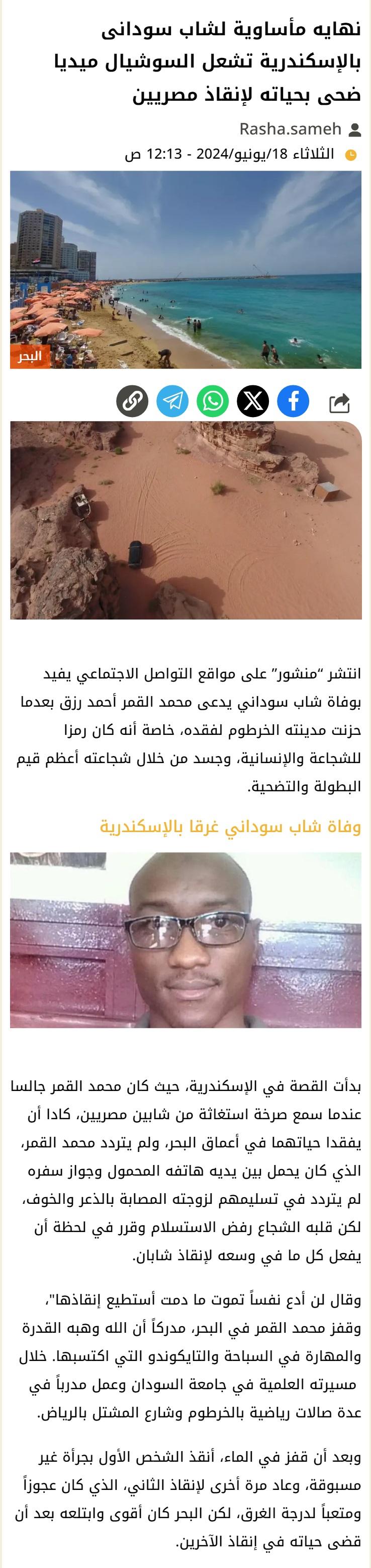تهزني جداً مثل هذه الاخبار الأليمة لعلاقتي القوية زمن الصبا بالبحر( الاتبراوي) وحوادث الغرق والإنقاذ ورغم ان الاتبراوي المزمجر (موسمي) لكنه كان يفجعنا دائما أكثر من ما يفجعنا النيل الهادئ في عدد حالات الغرق
