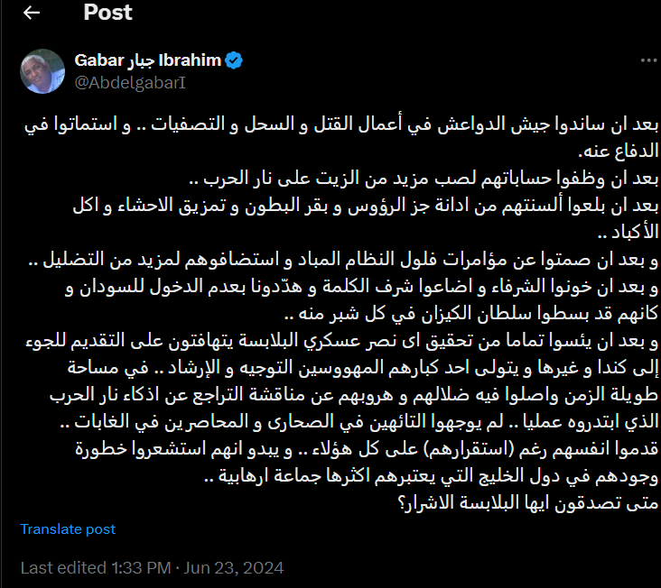 طنقعتوا وقلة ادبو يعملها مع مكتب البرهان والاخونج لكن لا تحرك شعرة لدي السلطات السعودية.