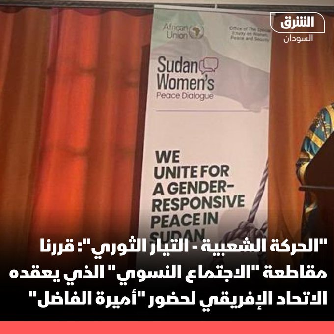كشفت الأستاذة إحسان عبد العزيز القيادية في الحركة الشعبية التيار الثوري الديمقراطي عن ملابسات انسحاب وفد الحركة الشعبية المشارك في الملتقى النسوي التشاوري، والذي يأتي ضمن الجهود الحثيثة التي يتبناها الإتحاد الافريقي من اجل وقف الحرب في السودان على حد تعبيرها..