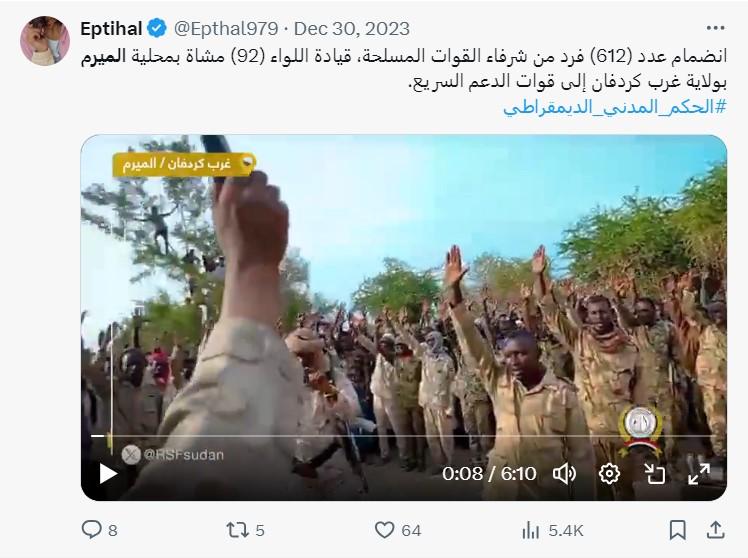 انسحبت قوات قيادة اللواء 92 بالميرم التابع للجيش السوداني، إلى منطقة مجوك بدولة جنوب السودان بعد معارك مع قوات الدعم السريع.وكانت قوات الدعم السريع أعلنت الخميس سيطرتها على منطقة “الميرم” بولاية غرب كردفان وذلك بعد معركة استمرت ليومين متتاليين، مع قوات الجيش المتمركزة باللواء 92 في المنطقة.وقالت مصادر من الميرم لـ”دارفور24″ إن قوات الجيش بالميرم انسحبت بعتادها مساء أمس الأربعاء الي منطقة مجوك بجنوب السودان حوالي 35 كيلومتر من الميرم، بعد تغطية جوية من الطيران الحربي الذي اسقط ما يقارب الـ 20 برميلًا متفجرًا بالقرب من المدينة.وأضافت المصادر أن قوات الدعم السريع دخلت عند الساعة 6 صباح اليوم الخميس إلى مقر اللواء 92 بدون أي اشتباكات حيث وجدت الحامية خالية من أفراد الجيش والعتاد العسكري.من جهته أكد مصدر أمني يتبع للجيش السوداني لـ”دارفور24″ انسحاب القوات صباح اليوم من قياده اللواء ٩٢ الميرم بكامل عتادها، قائلًا إن الانسحاب تكتيكي بعد تكبيد قوات الدعم السريع خسائر كبيره في الأرواح والعتاد.وأضاف أنه “نسبة لحصار الجيش ووقوعه في منطقه تعتبر حاضنة اجتماعية لقوات الدعم السريع كان لزاماً على الجيش الانسحاب.وكانت الدعم السريع تحاصر منطقة الميرم منذ مطلع الأسبوع الجاري، فيما قال الجيش السوداني، يوم الأربعاء، إنه صد هجومًا لقوات الدعم السريع على مقر اللواء 92 في المنطقة.وتقع مدينة الميرم في ولاية غرب كردفان على الحدود مع دولة جنوب السودان، حيث أصبحت قوات الدعم السريع تسيطر على كامل الحدود من كردفان حتى دارفور.وعقب سيطرة الدعم السريع على الميرم ينحسر وجود الجيش في منطقة هجليج النفطية ومدينة بابنوسة التي تحتضن مقر قيادة الفرقة الـ22 مشاة، إضافة إلى مدينة النهود التي يوجد فيها مقر قيادة اللواء 81.