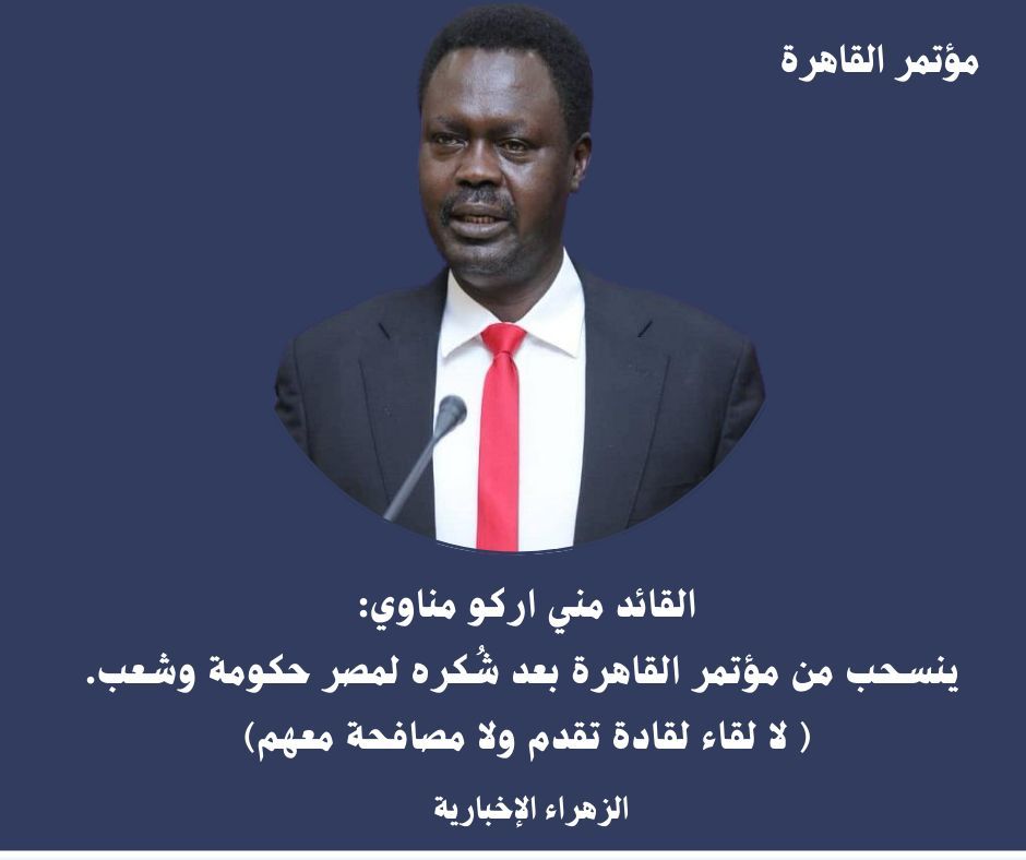من جانبه، عبر حاكم إقليم دارفور مني أركو مناوي، عن شكره لجمهورية مصر التي جمعت بين الفرقاء السودانيين، وقال في تغريدة على منصة X: “تنازلنا واجتمعنا على أمل أن يخرج المؤتمر بتعاطف مع الضحايا وإدانة ممارسات الدعم السريع، إلّا أنّ البيان الختامي خيّب ظنون السودانيين، خاصة الضحايا، لذا لسنا معنيين ببيان لا يحمل تعاطفاً مع الشعب”.