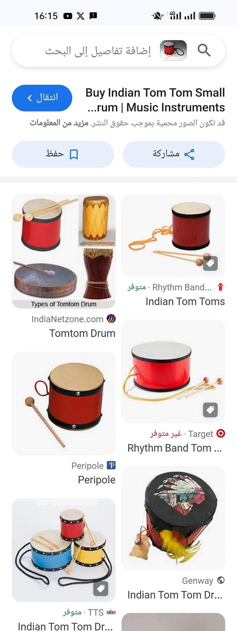توم توم: الطبل الذي يُضرب عادة بالأيدي. كانوا يتمايلون على إيقاع الطبل المتواصل. ومن بعيد، كانت طبول توم توم تدق. ومنشأه بلاد الهند.