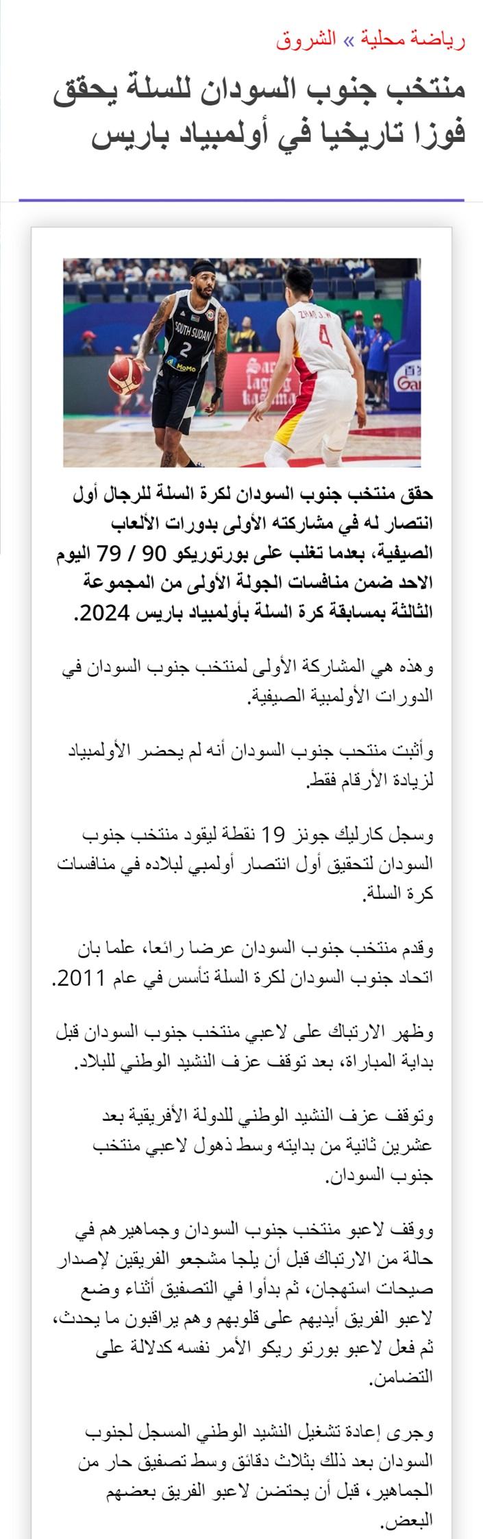 مبروك لفخر أفريقيا (منتخب جنوب السودان) للسلة الفوز على بورتوريكو