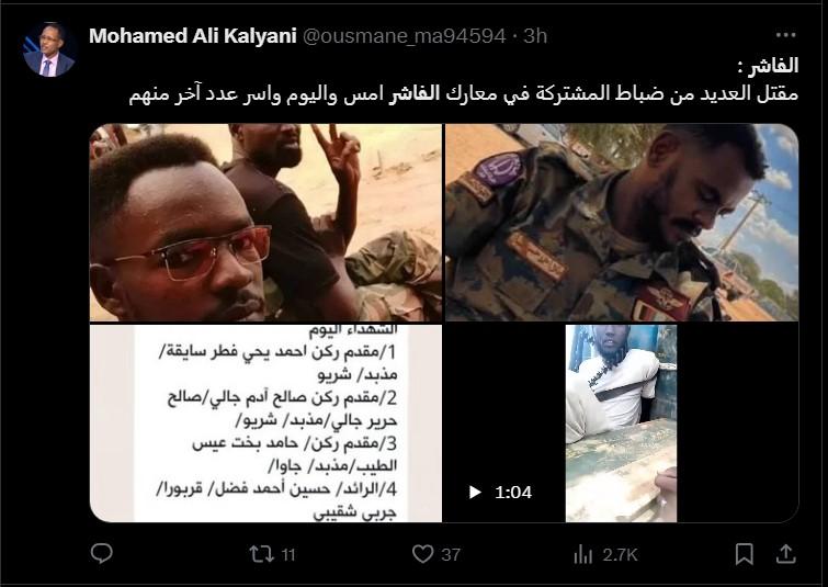 Quote: الجزيرة - السودان [قبل 59 دقيقة] المراسلة الحربية آسيا الخليفة توضح ملابسات قصف الطيران الحربي للفرقة السادسة مشاة التابعة للجيش بمدينة الفاشر #فيديو #الجزيرة_السودان |
