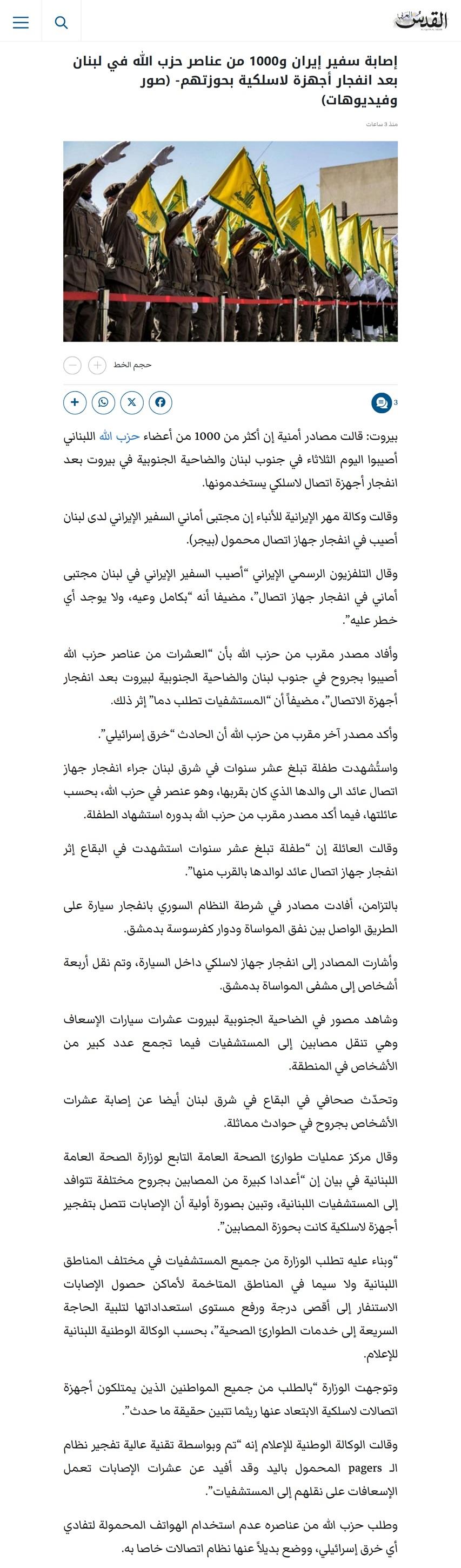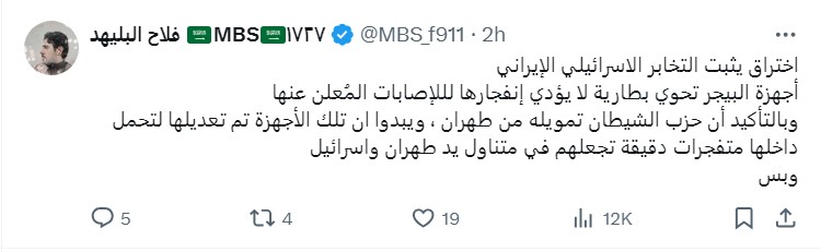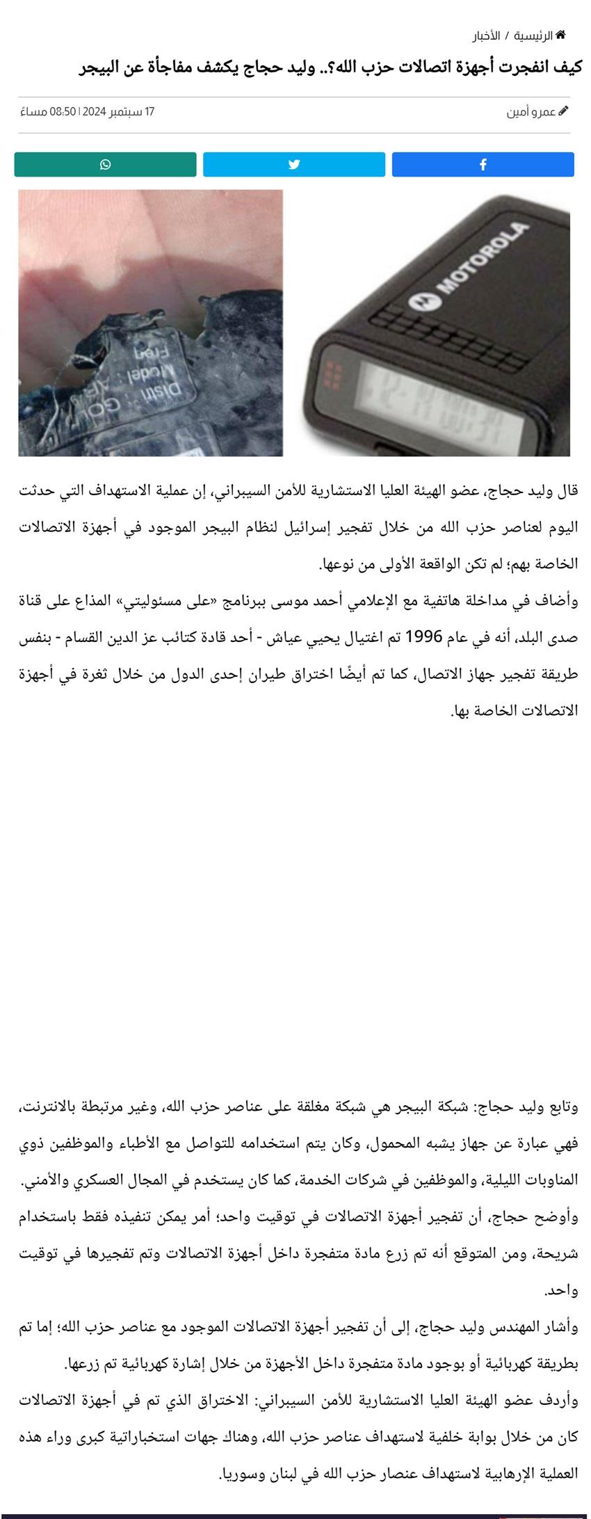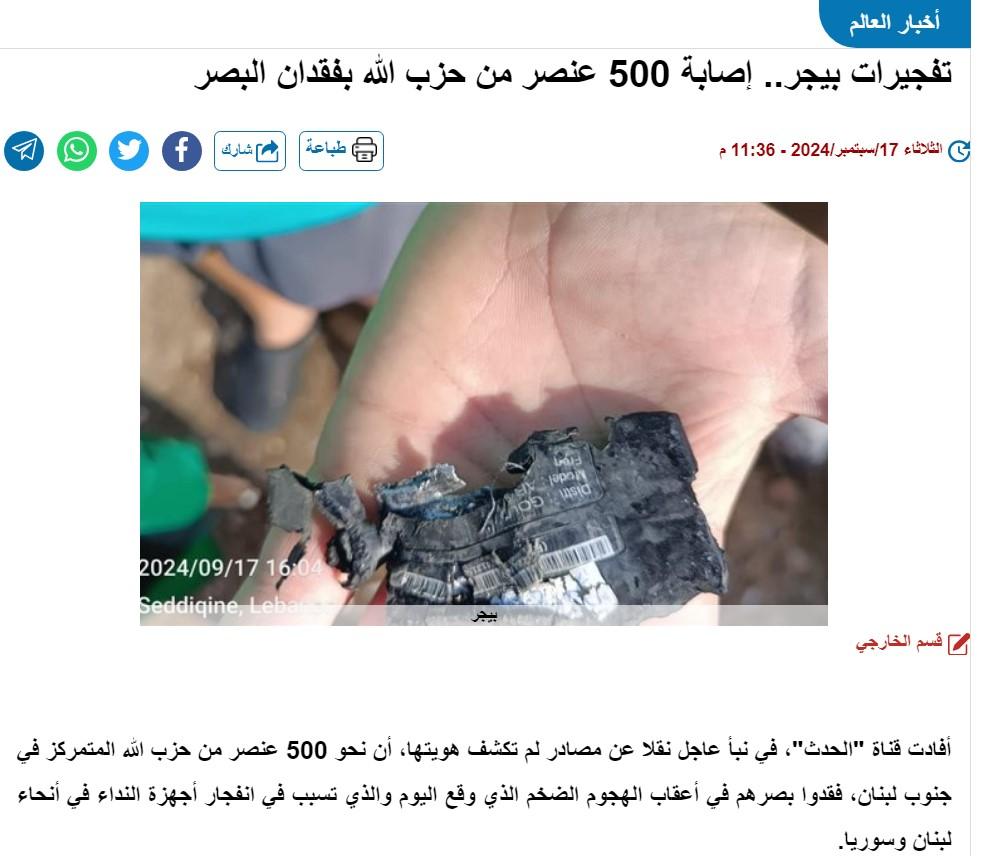 العالم سبقنا بسنين ضؤئية كثيرة ، ومن الصعب اللحاق به ، طالما نحن نتقاتل والحروب والموت سمه من سمات مجتمعاتنا المتخلفة . مثل خبر اليوم والتفجيرات التي حدثت ، مايزال بعضنا فاتحا فمه مشدوها ولايعرف بالظبط ماذا حدث في لبنان ، وكيف تم التفجير 😁 . حتي جهاز البيجر نفسه ، اجزم ان الكثيرين لم يسمعوا به ناهيك عن رؤيته .