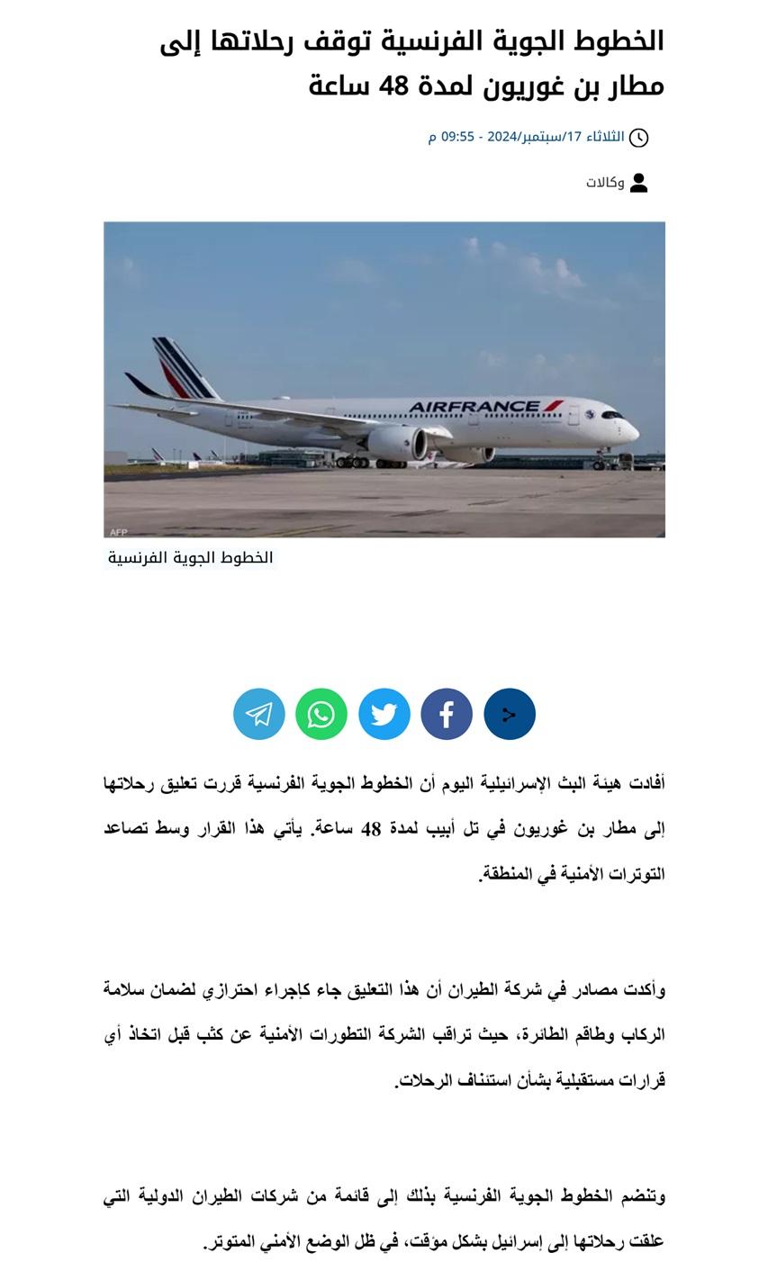 عمل ارهابي سيتسبب في اضرار اقتصاديةعالمية كبيرة. المتفجرات داخل البيجر يمكن ان يتم استخدامها داخل الموبايلات واجهزة ال GPS.. الآن الخطوط الفرنسية واللوفتهانزا اوقفت الرحلات لتل ابيب. ممكن قريبآ يمنعوا اي مسافر يحمل تلفون من ركوب اي طائرة. في شغل كبير منتظر شركات اجهزة الاتصالات لتأمين الاجهزة. الموضوع اكبر بكثير من حزب الله وحسع كل اجهزة المخابرات العالمية في حالة استاند باي.