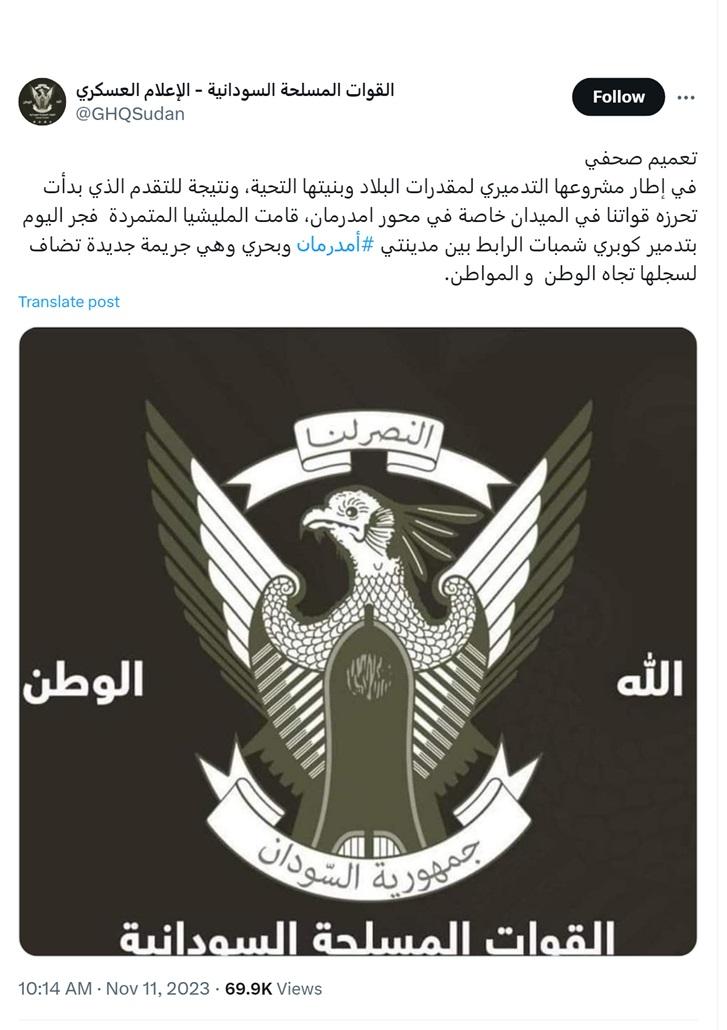 يا منتصر اسه البحرض ويشحع قتل المدنيين انا الذي ادنت الانتهاكات وادينها من اي جهة كانت، أم انت الذي يشجع ضرب البنية التحتية؟ انتبه انت بتكتب في موقع اميركي، وليس منصة د.ا.ع.ش ي.ة... خدها حلقة مني والبسها في اضانك لو استعنتم بالجيش المصري كما تفعلون الان، فان الشعب السوداني لقد بصقكم وللابد. نقطة سطر جديد.